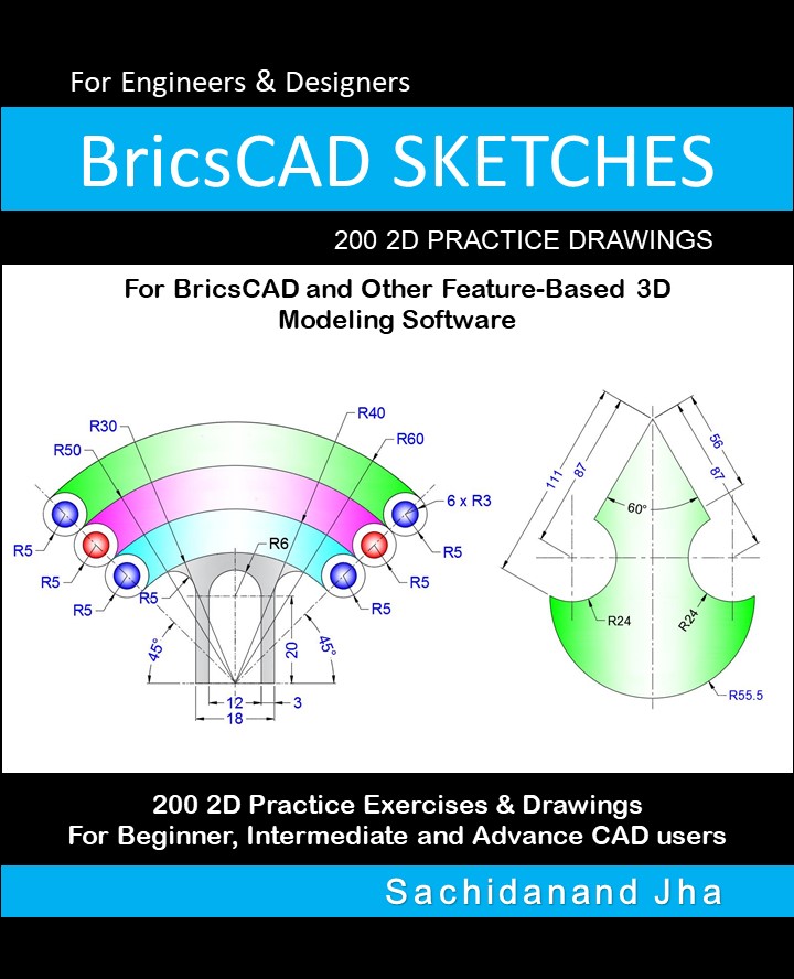 - Each exercise includes a final sketch image with all required dimensions, allowing you to independently replicate the design using BRICSCAD or any other 3D CAD software that supports 2D sketching.